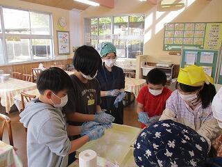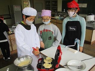 5、6年生がお楽しみ会の一環でワッフル作りをしています。