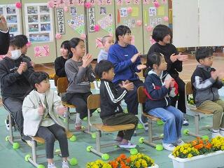 参観授業の前に、保護者の皆様に児童の練習の成果を見ていただきました。