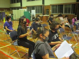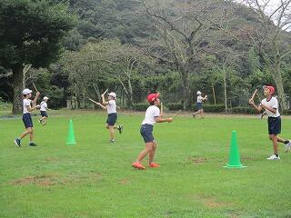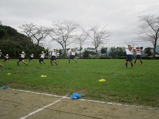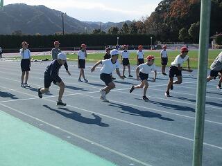 午後は、50m走を行いました。タイムを計るわけではないのですがやはり他の学校の人達と走るのは緊張するようで、終わった後みんなホッとした表情でした。