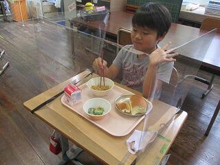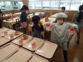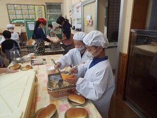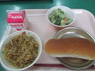今日の給食の献立は「やきそば・ツナサラダ」でした。港小学校1・2年生のリクエスト献立ということです。川島小学校の共同調理場で作られた給食は、川島小、港小、東海中の3校に配られています。