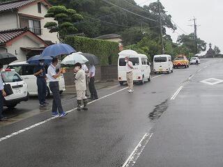昨日、通学路合同点検が行われました。県延岡土木事務所・市土木課・市交通政策課・市教育委員会・延岡警察署の方々と羽田水尻区長様、学校側、計11名が参加し、倒壊の恐れのある空き家、ガードレールのない通学路等、本年度危険箇所として挙がっている6カ所について検討し、現地を視察しました。