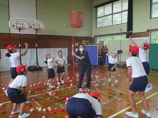 今日は日曜参観日でした。3校時の参観授業は親子団技の練習やばんば踊りの練習を行いました。雨のため体育館での練習でしたが、団技は何回も出番がありお家の人も大忙しでした。ばんば踊りは、踊るほどにみんな踊りを思い出したようでした。本番は天候に恵まれ運動場でできるとよいと思います。