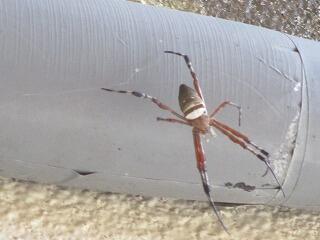 何という名前のクモか、特徴的なのですぐ分かるだろうと思っていたのですが、図鑑で調べてもインターネットで調べてもなかなか分かりませんでした。クモは同じ種類でも、雄や雌、幼体や成体で、色や模様が変わっていたりするのでなかなか調べにくいことが分かりました。
