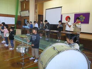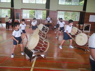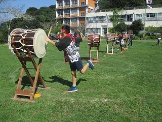 2年生は、去年上級生が太鼓を叩く姿を見て、「かっこいい。私たちもやってみたい。」と言っていたので、願いが叶い大変ですががんばっています。
