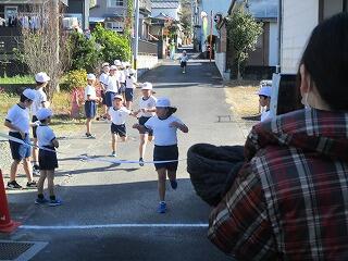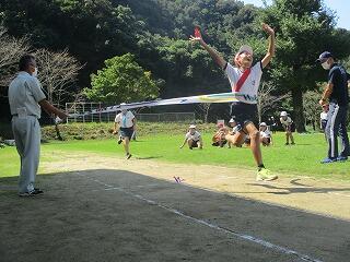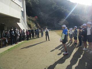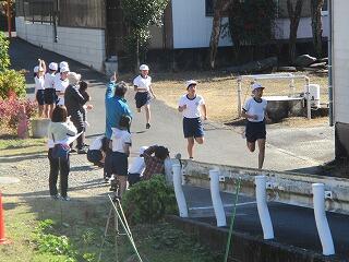 11時15分から、3・4年生の部800m、1・2年生の部600m、5・6年生の部1000mの順でスタートしました。みんな合図と共に元気よく駆け出しました。お家の方や地域の方の応援を受けながら、全員が完走しました。閉会式では、応援してくださった方々の前で、全員が走り終えた感想を述べました。堂々とした達成感に満ちた態度でした。
