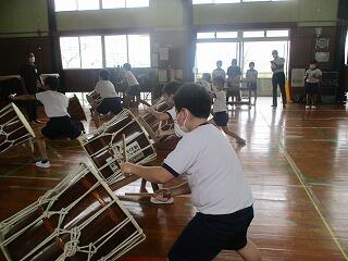 今日の朝の時間と1校時は第3回全体練習が行われました。まず、運動場でばんば踊りを行い、隊形の確認をしました。