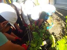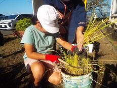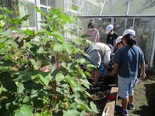 プランターに植えていた稲は実がしっかり詰まっていて、さつまいもは小ぶりながらも、色や形もきれいでした。