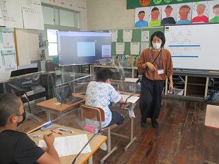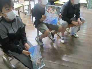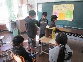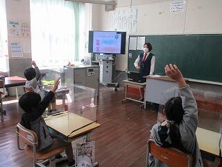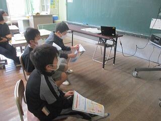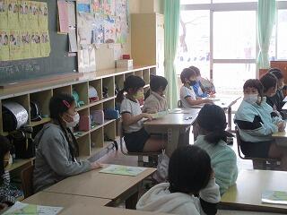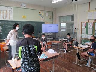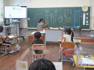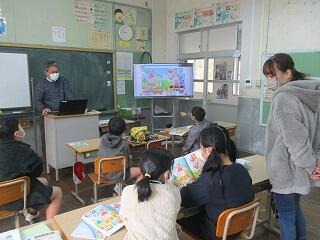 2年生は国語「お手紙」で1年生も一緒に、登場人物のがま君やかえる君の気持ちを考えました。6年生は外国語サポーターの岩切先生も一緒に、好きなスポーツについて英語で会話をしました。