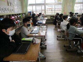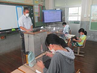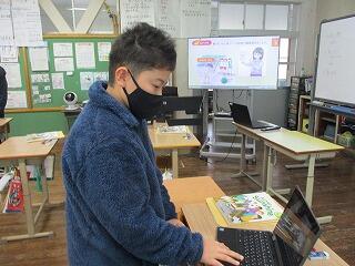 5・6年生は、道徳でタブレットを使いました。それぞれの考えがロイロノートを通してテレビ画面やお互いのタブレットに映し出され、それをもとに話し合いを進めました。