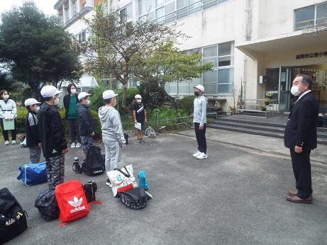 今日は、延岡市内の小学校が集まって西階陸上競技場でスポーツフェスタが行われます。港小学校からは5・6年生が参加します。