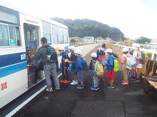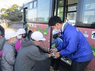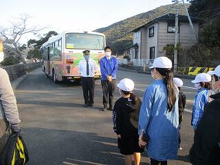 今日は、1~4年生のバスの乗り方教室がありました。宮崎交通の酒井さん・日高運転手さんが、バスの乗り方について、「バスの種類や設備・行く先の見方・時刻表の見方・整理券の取り方・運賃表の見方・乗車のマナー・降車ベルの押し方・両替の仕方」等、いろいろな説明をしてくださいました。一人でもバスに乗る力が身についたのではないかと思います。