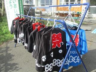 フェンスには大漁旗も張られ雰囲気を盛り上げていました。8時30分から11時20分までのプログラムを、保護者の方や中学生の皆さんにもご協力いただき、予定通り順調に進めることができました。ありがとうございました。