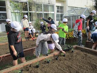 今日は、朝の活動の時間に秋の花いっぱい活動を行いました。来年春の卒業式や入学式に向けて、パンジー・キンギョソウ等の種を苗床に蒔きました。自分達で種から育てた花々で6年生を見送ることができたらよいと思います。