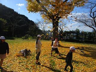 秋の穏やかな一日でした。1年生はカタカナを丁寧に書く練習をしました。4年生は空気を閉じ込める実験をしました。