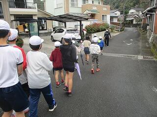今日は、4日のマラソン大会に向けて、全校でコースの下見を行いました。今日の午後は雨になる予報ですが、午前中に予定どおり実施することができました。