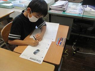 今日、5年生はみやざき学習状況調査がありました。国語・算数のテストを受けました。宮崎県内の5年生が一斉に受けるテストです。