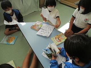 6日には、図書委員会からのクイズと共に、それぞれがお薦めする本を紹介して一番読みたいと思わせた本を競い合う「ビブリオバトル」を行いました。学年ごとに分かれ、自分のお薦めの本を一生懸命紹介し合っていました。