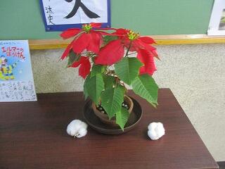 1・2年教室前と学校玄関に飾らさせていただきました。1・2年教室前のポインセチアはかなり大きく育っています。緑の葉と赤い花のコントラストがクリスマスシーズンの雰囲気にぴったりです。