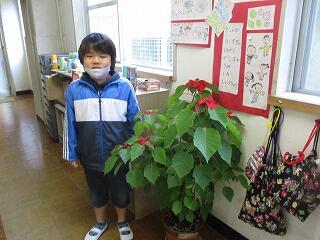 先日、中東海地区の上田淳一さんが、家で育てられていたポインセチアの花を学校へ持ってきてくださいました。