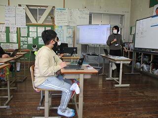 5・6年生も外国語の「思い出に残る行事を紹介しよう」という学習で、タブレットを使って、リーフレットのようにまとめ、英語でのスピーチを練習していました。タブレットで自分のスピーチを録画しながら確かめていました。