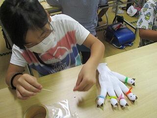道具等の準備を事前に行っていただいたこともあり、1年生から6年生まで、みんなが楽しく上手に指人形を完成することができました。部屋に飾れば、きっとよい思い出になると思います。