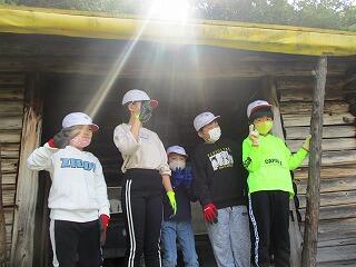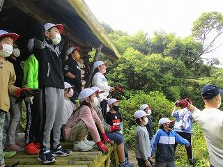 先日1年生歓迎集会で雨のため実施できなかった山小屋登りを、今日実施しました。1・2年生にとっては初めての山小屋登りです。みんな探検家になったつもりで楽しそうに登りました。