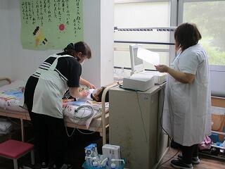 今日は、宮崎健康づくり協会の方3名が、1年生心電図検査を行ってくださいました。