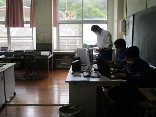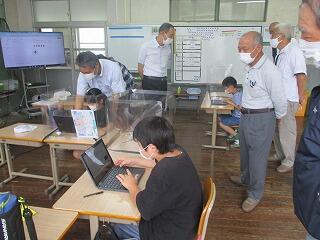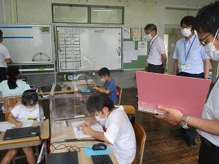 今日は、NTTの方4名が来られて、クロームブックの設定を行ってくださいました。国のGIGAスクール構想に沿って、延岡市内の学校に配付された新しいコンピュータのことです。これで、後パスワード等が届けば、一人一人が授業で使えるようになります。