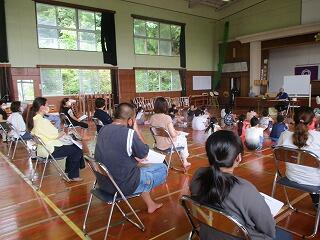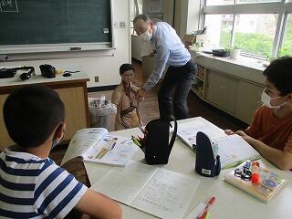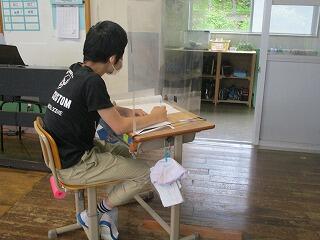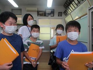 今日は、朝8時水尻公民館に集合しての登校日となりました。9時までは夏休みの問題集に取り組んだり、丸付けを行ったりしました。公民館でやっていると、まるで塾のような感じです。