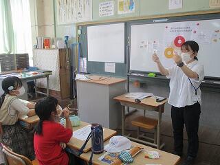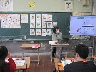 昨日19日(月)3校時1・2年、5校時3・4年教室で、保健室の田中先生による「好き嫌いなく食べよう」の指導が行われました。食物の三大栄養素のグループ分けを行いながら、好き嫌い無く食べることの大切さを学びました。