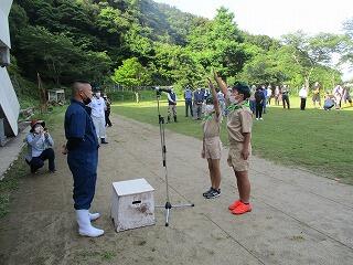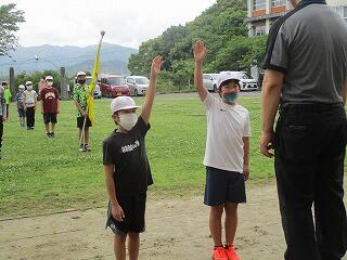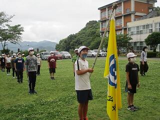 今日、朝の時間に緑の少年団結団式の練習を行いました。行進練習の後、本年度の団長吉村航海君、副団長渡邉賢士朗君が誓いの言葉の練習を行いました。