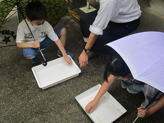 11日(火)に梅雨入りし、天気の優れない日が続きます。今日も朝から雨です。そのような中、4年生は理科「天気と一日の気温」でタイムリーに、雨の日の雨水の流れ方を調べていました。ビー玉で傾きを調べ、雨水がどちらに流れるかを考えていました。