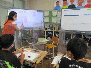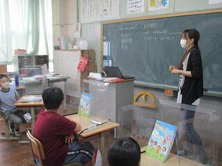 今日、3・4年生の外国語活動に、外国語サポーターとして岩切えり子先生が来校されました。