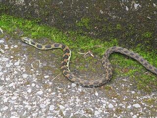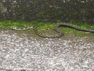 5月14日(金)、今年も池近くにヤマカガシが現れました。昨年最初に見かけたのが6月1日だったので、2週間近く早く現れたことになります。