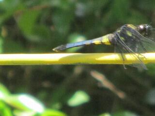 先日、校内の池(ビオトープ)でシオカラトンボを見かけました。秋に水色の雄と黄色い雌が一緒に飛んでいる風景はよく見かけたのですが、このシオカラトンボの体の色は半分が水色、半分が黄色なので、「もしかしてとても珍しいのでは」と慌てて写真に撮りました。
