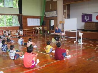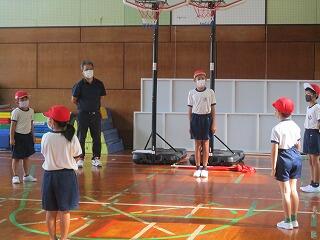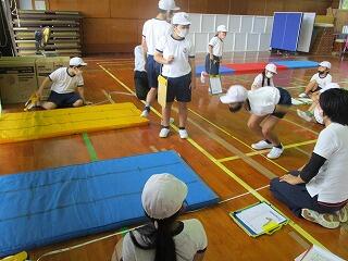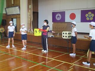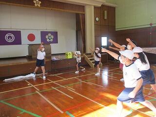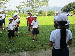 上学年は、もう運動会のダンスに向けての練習が始まりました。今年も伝統になっている「ソーラン節」を踊る予定です。上級生が下級生にお手本を見せていました。暑い中をがんばっていました。