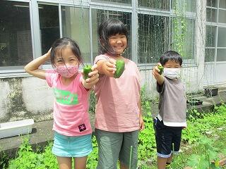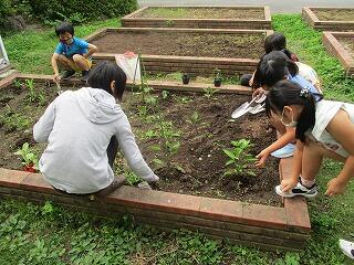 1・2年生は今日、自分達で観察園に植えた野菜の育ち具合を観察しました。キュウリ・ナス・ピーマン・トウモロコシ等が順調に育っているのを見て喜んでいました。どんな花が咲いているかも観察することができました。トウモロコシは1回目は鳥に種を食べられてしまったけれど2回目は順調に育っているそうです。