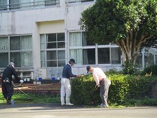 朝の登校後、曜日を決めてみんなで草抜きなどのボランティア活動を行っています。