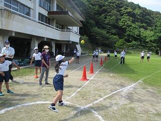 6月1日の今日は、1校時に全校体育でソフトボール投げを行いました。今日も爽やかな天気です。
