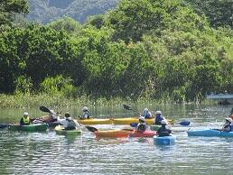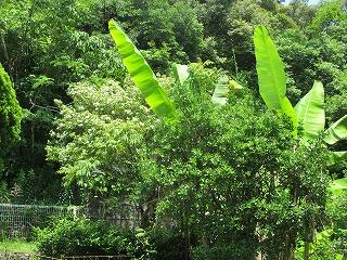 裏庭ではバナナの葉の近くのクチナシの花も満開でいい匂いがします。いろいろな野鳥のさえずりが聞こえますが、反対側を見ると、海近くの川が流れ広々としています。