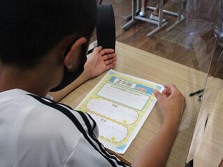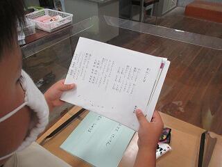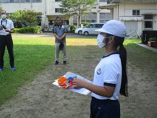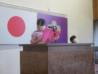 そして、2年藤本ひなたさん、4年喜多妃奈子さん、6年吉村航海君が、1学期を振り返った作文を代表で発表しました。