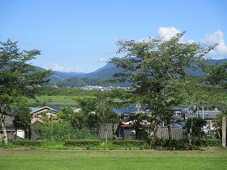 PTA奉仕作業で、使われていないビニールハウスを撤去したところ、校舎裏の砂防ダムが、玄関入り口からすぐ目の前に見えるようになりました。周りには、コマツナギの一種と思われる木の、小さなピンクの花があちらこちらで満開です。校舎の玄関から砂防ダムが見えるというのは不思議な感じです。