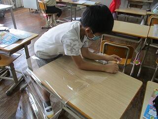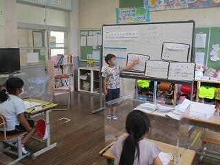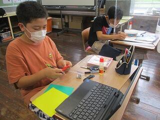 授業の様子を見ると、5・6年生は2学期の目標を考えていました。3・4年生は、自分の机に立てる新しいパーティションを組み立て中でした。1・2年生もいよいよクロームブックを本格的に使い始めました。