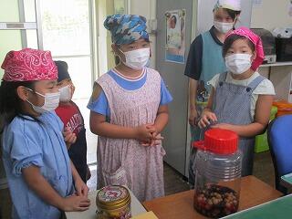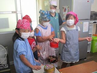 5月に梅ちぎりをしたあと、1・2年生が生活科で梅ジュースづくりと梅ぼしづくりを行いました。梅ジュースは、ほろよい甘さと酸味がよく大変おいしかったです。