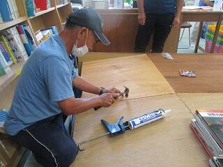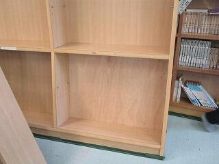 昨日、放課後子ども教室安全管理員の川東さんが、中島さんと共に、図書室の棚の傷んでいる部分を修繕してくださいました。ベニヤ板を取り替えての本格的な修繕となりました。