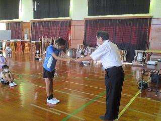 更に、6年の歌津匠音君が東海アスリートとして、宮崎県学童陸上競技大会コンバイドA80mハードル走高跳3位入賞の表彰を受けました。