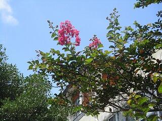 道路沿いのサルスベリの花が咲いているのを見て、「学校玄関横のサルスベリの花はまだ咲かないのかな?去年に比べてだいぶ遅いのではないかな?」と思っていたところ、先週金曜日の7月30日に咲いているのに気付きました。そして、去年のホームページを見てみると1日違いの29日にサルスベリの花のことを書いていました。時計も暦もないのに、ほぼ同じ時に咲くことに改めて驚かされました。