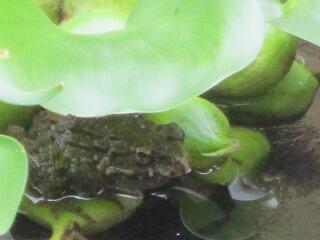 昨日、池でホテイアオイがスーッと不自然に動いているのに教頭先生が気付いたそうです。おかしいなと思ってよく見ると1匹のカエルがホテイアオイを動かしていたのだそうです。