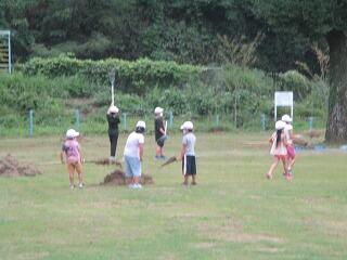 そんな中、ALTのアナ先生の来訪日とあって、急遽「アナ先生と一緒にみんなで遊ぶ日」となりました。「はしからはしまでオニ」遊びでみんな運動場を走り回っていました。木陰が涼しい季節になりました。