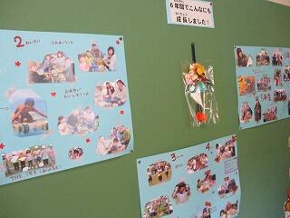 保健室の大浦先生が作成した6年生思い出の写真が保健室前に掲示されています。1年生の時からからこれまでの6年間の写真が見やすくまとめられています。